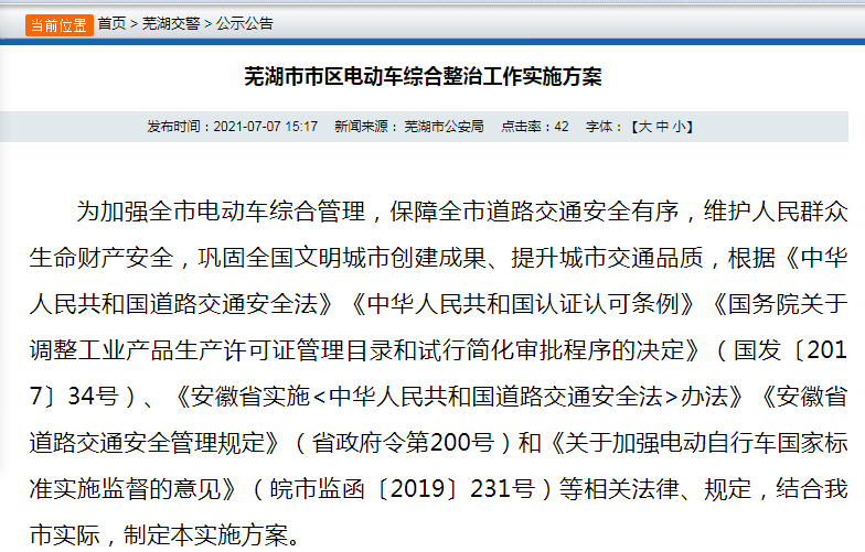 自2021年7月15日至2021年11月30日,蕪湖將在全市范圍內開展電動自行車集中登記上牌工作。原則上自2022年1月起,我市電動車管理進入全面規(guī)范化階段,市場無超標電動自行車生產銷售、兩輪電動車分類帶牌行駛、電動車交通違法行為和交通事故明顯減少,道路通行秩序進一步優(yōu)化,城市品質進一步提升。